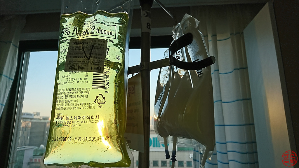 그러더니, 또 몇가지 검사가 있습니다. 내과의 주치의가 이런저런 얘길 해줬는데, '조영제 맞고 CT도 찍는 거 아니었나?'라고 물었더니, 안 했냐 묻습니다. 담당 레지던트가 주치의의 지시를 잘못 이해해서 추가 CT 지시를 안 내린 것이었습니다. 쩝. 주치의가 빠른 진행을 위해 심야 CT 촬영이라도 찍자고 합니다. 그래서 밤 9시에 응급실에 딸린 영상의학과에서 CT 촬영했습니다. 저녁에 열이 조금 나서 (약 38도) 해열제 맞아서 체온을 낮췄던 게 첫 날 밤이었던 것 같습니다.