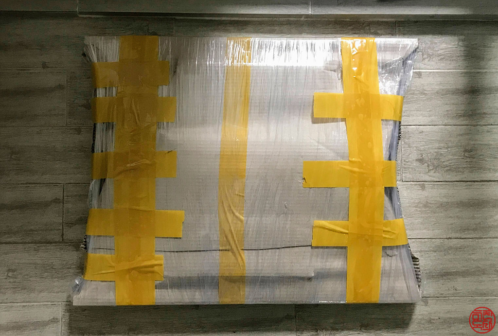 타카로 고정하기 전에 아크릴 판을 끼워 넣어둔 상태입니다.