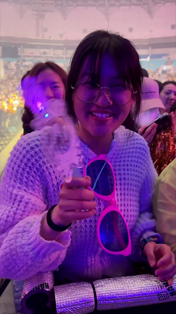 아앗. Ice Cream이닷. 아까 Tiny Love에서 쓰였던 하트가 반대편으로 접으니 아이스크림이 된다. 아까 썼던 땀에 쩔었던 하트를 들고와서는 아이스크림으로 만들어서는 바지 춤에 꼽고 노래하기 시작한다. ㅋㅋ 노래를 한참 하는데, 갑자기 관객석 어디선가 큼직한 분홍 선글래스를 건네 받아서 쓰고 노래하기 시작한다. 어어? 어제 저거 큰 애가 호주 친구랑 인생 네컷 찍은 사진에서 본 건데? 큰 애 걸 건네 준 건가? 하여간 재밌는 소품이 되어 공연에 쓰였다. 나중에 보니, 큰 애가 초반에 건네주려 했다가 생각해보니, Ice Cream에 딱 어울릴 것 같아서 노래 시작하자마자 미카한테 이거 가져가라고 손짓해서 전달했단다. 미카가 고맙다고 손짓으로 인사하고 했다는데, 너무 신나서 사진이고 뭐고 없댄다. ㅎ