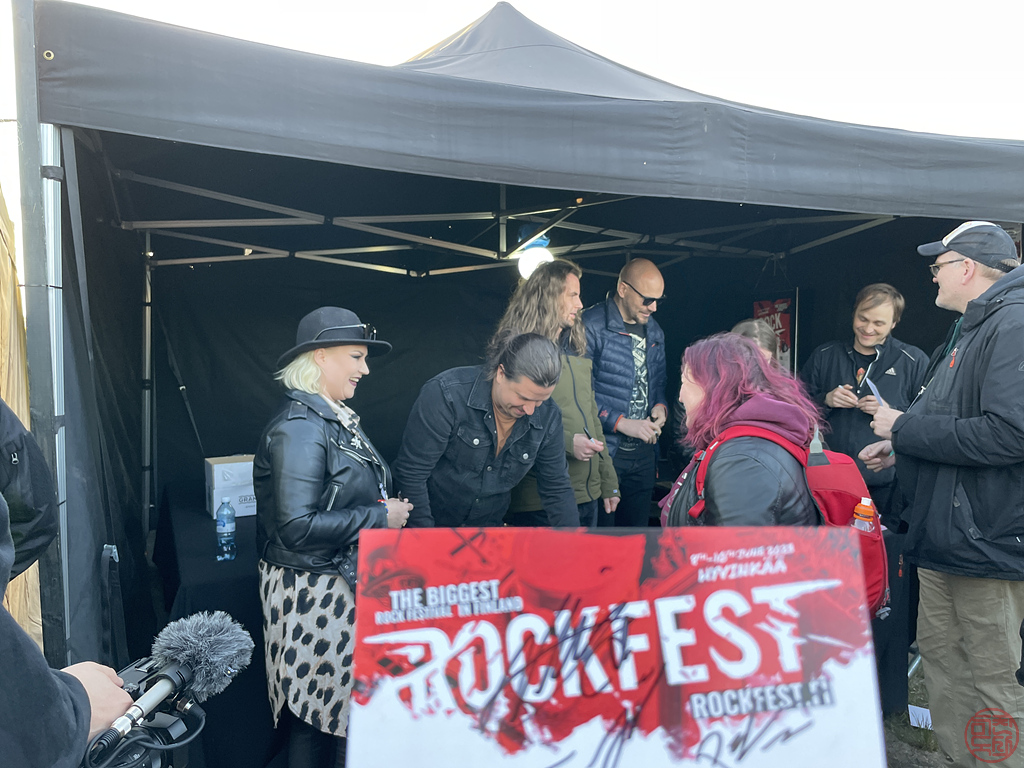 멤버들이 Rockfest 로고가 딱 박힌 엽서 크기의 용지에 사인을 해준다. 미리 뭔가 준비해 온 사람들한테는 거기에다 해주고. 욜~ 아무 것도 준비 없이 왔는데, 다행이다 싶기도 하네. 하여간, 내 앞 사람은 가방이던가에 신보 LP를 구겨넣어 와서 꺼내서 사인을 받는다. 야~ 부럽다~ 나는 행사 측에서 준비해온 용지에 사인을 해달라고 하면서 용기내서 말을 걸어보았다. "나는 한국에서 이 페스티벌을 위해 왔다." "(밴드 멤버들) 와~ (누군가가) huge respect!" "당신들이 한국에 오길 진정으로 바란다" "(밴드 멤버들) 우리도 그렇다"며 응답해줬다. 야~ 너무 좋아. 그냥 어쩌다가 애플뮤직에서 추천해준 음악으로 알게 되어 근 몇 년간 제일 많이 듣는 밴드 중 하나인데, 이렇게 그들의 본거지인 핀란드에서 만나서 사인까지 받다니 아주아주 기뻤다!
