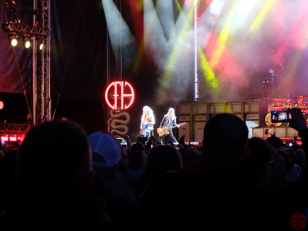 쉬어가는 시간 끝나고 연주된 'Russian Roulette'에서는 멤버들 각각 솔로를 곁들인 소개가 있었다. 2022년도에 발매한 앨범 Circus of Doom이 이전 앨범에 비해 재미가 덜하다 생각했는데, 라이브에선 기가 막히네. 노-라가 샤우팅할 때마다 감탄했던 것 같다. 그리고, 핀란드 밴드고 마지막이라 그런지 무대 쪽에 불기둥, 불꽃 기둥 등 이펙트도 엄청 많이 쏜다. ㅎ