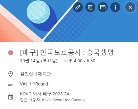 | 2024-25 프로 여자 배구 일정 구글 캘린더에 넣기 (0) | 2024.10.04 |