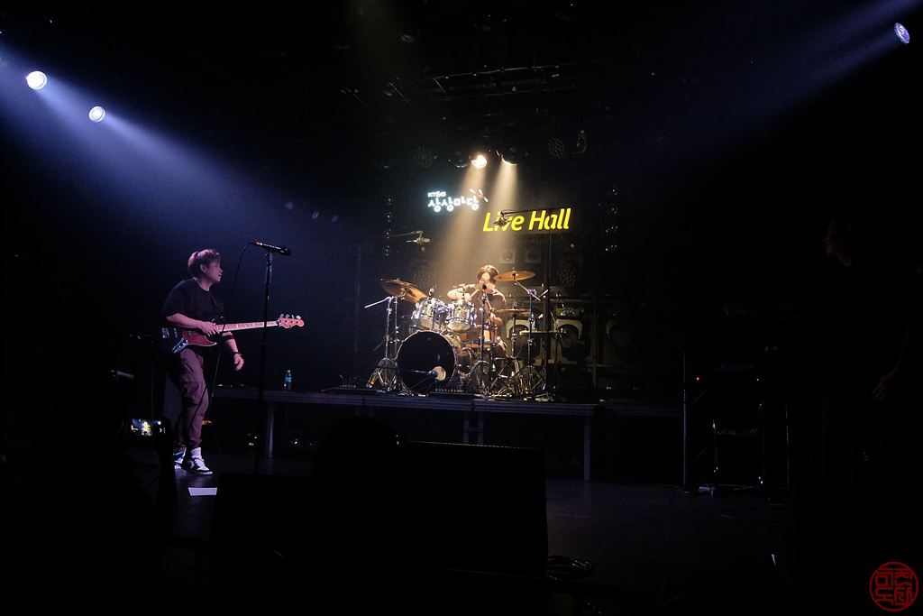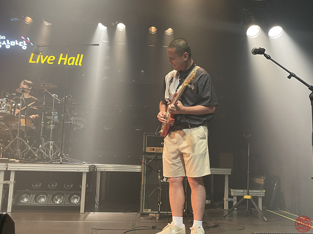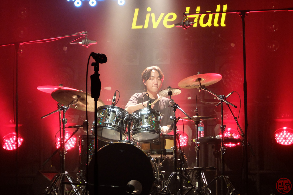 강성실이란 드러머는 꽤나 젊은 친구인 것 같은데, 처음부터 예사롭지 않았다. 뭔가 전형적인 락 드럼의 느낌보다는 재즈 드럼의 느낌이 더 있는데, 그 톤이나 파워는 여느 메탈 밴드 못지 않게 강했다. 2010년 게리 무어(Gary Moore)의 내한 공연 당시 드럼이 블루스 필인데 톤이나 파워가 엄청났던 그 드러머가 살짝 떠오르기도 했다. 그런데, 이 솔로가 예사롭지 않다. 드럼 셋도 사진에 보이 듯이 나름의 구성을 한 것 같은데, 드럼 솔로가 마치 유튜브의 유명한 드럼 채널인 Drumeo에서 유명한 드러머들이 솔로 연주하는 것 못지 않게 개성있고 파워 있는 연주였다. 락/메탈 밴드에서 듣던 그런 솔로가 아닌 드럼 자체로 굉장히 다채로움이 느껴지는 멋진 솔로였다. 공연 끝나고 찾아보니 여기저기 함께 하는 팀이 많은 것 같은데, 계속 지켜보고 싶은 그런 드러머라 반갑고 좋았다.