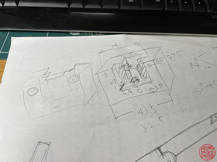 사진에서 검정 금속 부품이 플라스틱으로 된 경첩 부품을 고정시키는 건데, 경첩 부품에서 외부로 노출된 부분이 깨져 버렸다. 모양으로 봐서는 접착제로 붙일 수 있게 생겼지만, 접착제라는 게 생각보다 힘을 잘 못 받는 지라 그냥 저 경첩 고정 부분을 전체를 감싸서 본체에 고정하면 될 것 같아 도안을 시작했다.