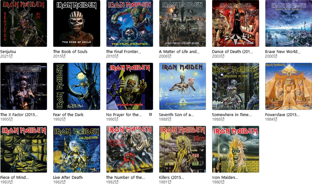 영국의 대표적인 헤비메탈 밴드인 아이언메이든(Iron Maiden)은 결성 48년이 되는 베테랑 중의 베테랑이며, 전설적인 밴드 중 하나이다. 이들의 앨범엔 늘 같은 캐릭터가 등장한다. 이름은 '에디(Eddie)'이며 꽤나 개성있게 생겼다.