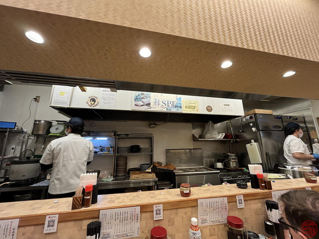 주방을 바라보고 앉는 형태인데, 주방에선 쉼없이 돈가스를 튀기고 있다.