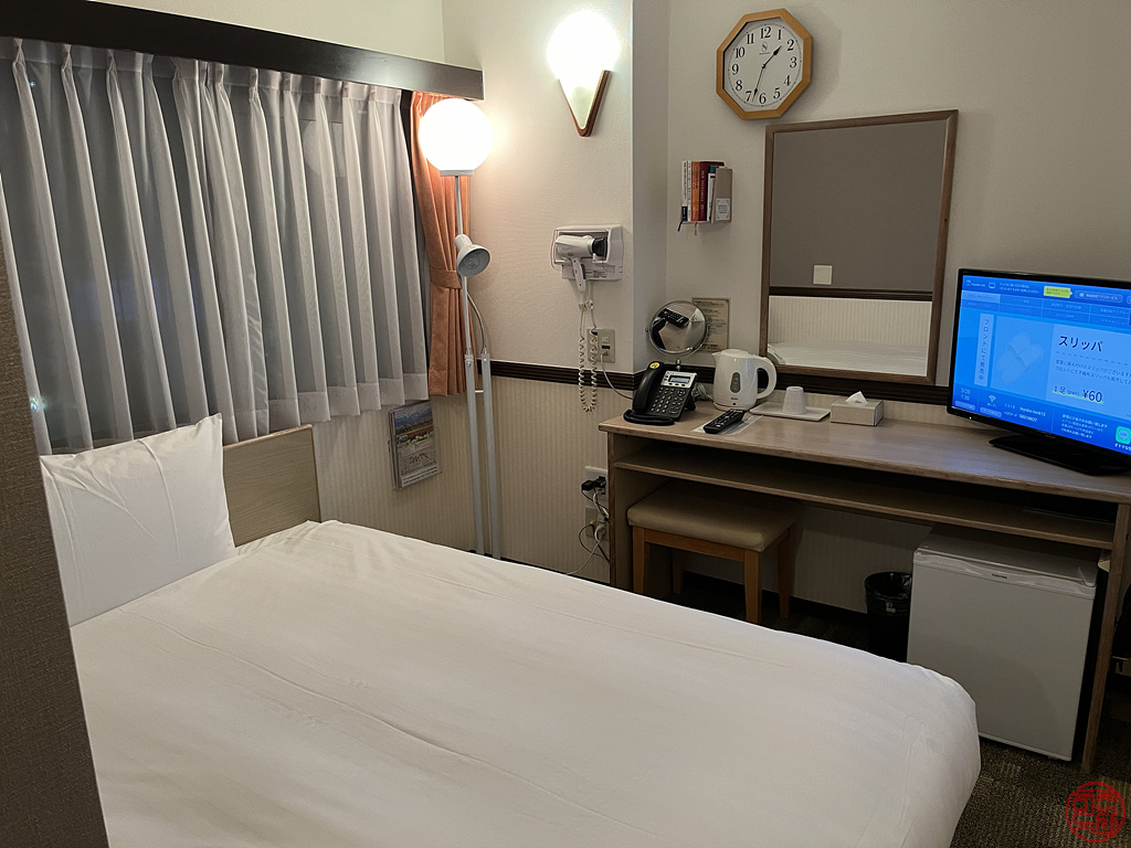 토요코인은 어딜 가나 방 구조가 비슷해서 익숙해 좋다. 크기는 작지만 혼자서 지내기에 이 정도면 충분하기도 하고 가격도 착해서 일본에 갈 때엔 가급적 여기를 이용한다. 포인트가 쌓기도 좋고, 쓰기도 좋다!