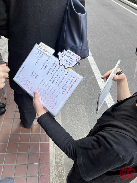 헛. 이미 줄이 꽤 길다. 하지만, 금방 줄겠지...하면서 기다린다. 종업원이 밖에서 기다리는 사람들에게서 주문을 미리 받아놓는다.