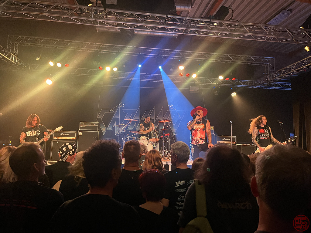 5인조인데 베이시스트는 하얀 헌병(?MP) 헬멧을 쓰고, 기타리스트 한 명은 왼손잡이로 모히칸 스타일(?)로 머리를 밀어서 좀 특이해 보인다. 왼쪽에 있는 기타리스트는 그냥 좀 얌전하고, 보컬은 살짝 머틀리크루의 보컬 빈스 닐 닮아 보이기도 하다. 드러머는 내내 상체를 벗은 채로 연주했는데, 상당한 근육질이었다. 드러머가 새롭게 합류했다고 했던 것 같다.