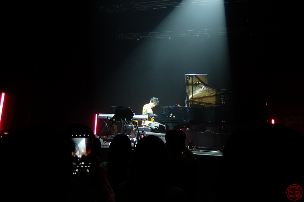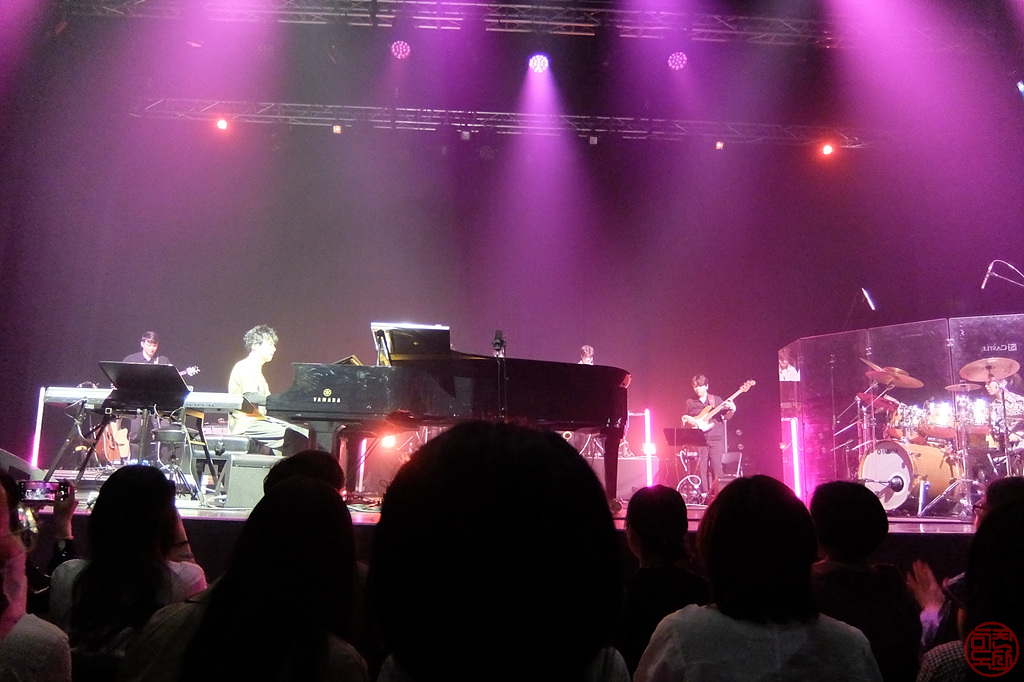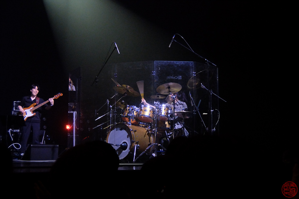 공연은 정시(7시 반)에 시작했다. 양방언이 혼자 무대에 올라와서 혼자 피아노를 치기 시작했다. 그리고는 나머지 멤버들이 올라와서 본격적으로 연주가 시작되는데, 헉! 시작부터 드럼 소리가 장난 아니다. 영상으로만 보던 그 가와구치 센리의 드럼 연주를 직접 보다니 감개 무량! 무대 뒤쪽으로 왼쪽에 기타, 중앙에 브라스 3인방, 오른쪽에 베이스가 위치하고 있는데 중앙에 그랜드 피아노와 신디사이저가 위치하다 보니 내 자리에선 기타, 브라스 3인방은 머리만 보인다. 아, 조금 뒤나 2층에서 보면 더 좋았을 것 같다.