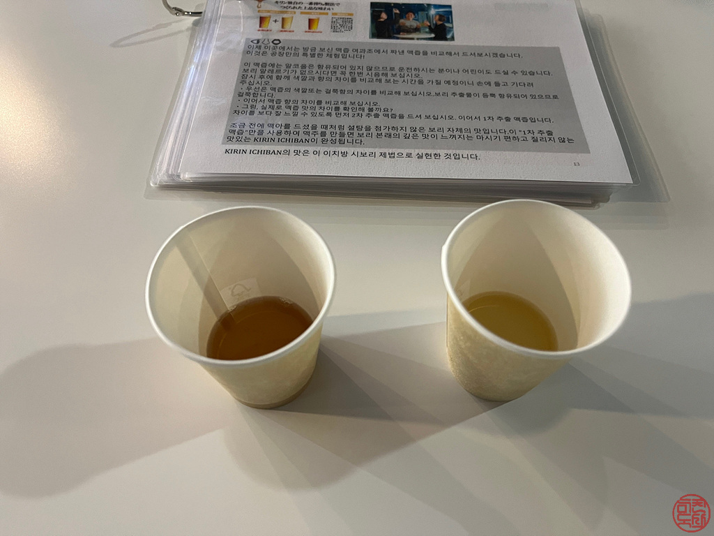 원재료 맛과 중간 과정의 맛을 봐서인지 이치방 시보리 맥주에서 원재료 맛을 느낄 수 있어 재미가 배가되어 마시는 내내 즐거웠다.