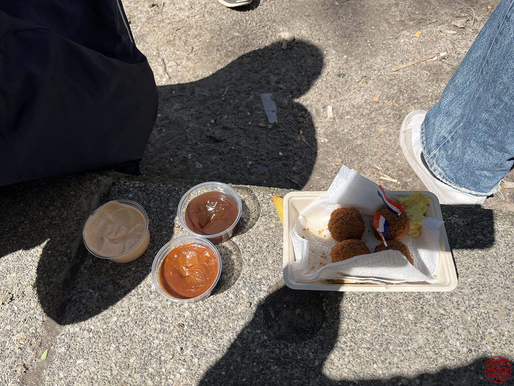 나혼자 어슬렁거리고 있다보니, 한 남자가 다가와서는 '혹시 음식 투어 왔냐?'라고 물어보길래 그렇다고 했다. 이 사람과 통성명하고 얘길 좀 나눴다. 인도 사람인데 유럽을 휴가로 돌다가 암스테르담에서 음식 투어 신청했다 한다. 조금 더 있다가 백인 커플이 왔는데, 이 사람들은 영국에서 왔댄다.