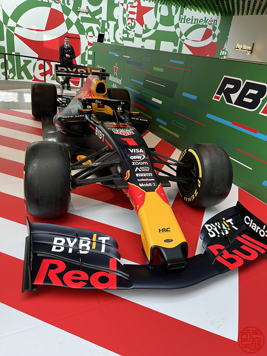 입구에 하이네켄이 후원하고 있는 F1 레이싱 팀인 레드불 차량이 한 대 딱~ 있다.