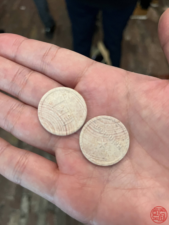 예약 티켓을 보여주면 기본으로 이렇게 가벼운 플라스틱으로 된 코인 두 개를 준다.