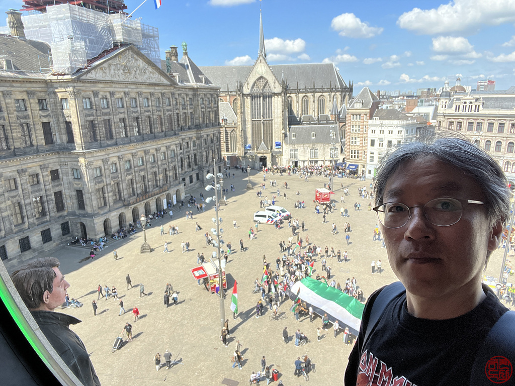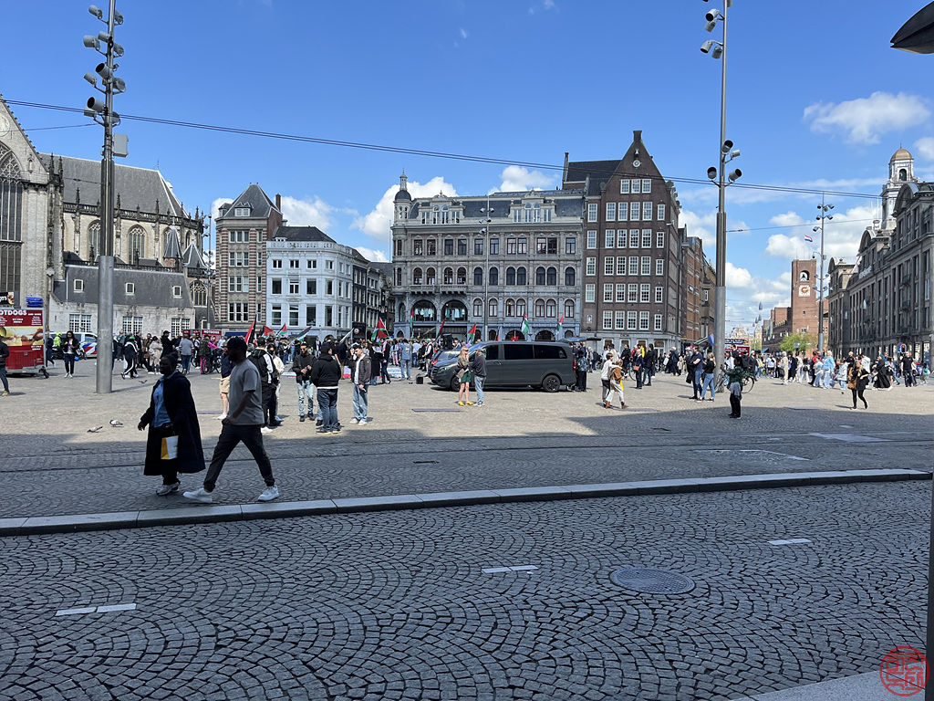 마담 투소 박물관으로 가는 길에 시청 앞을 지나는데, 여기엔 팔레스타인 국기를 들고 있는 무리가 시위를 하고 있었다. 알고 보니, 여기가 암스테르담에서 유명한 담 광장이었다.