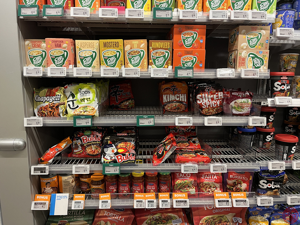 돌아오는 길에 들른 스키폴 공항 수퍼에도 역시나 우리네 라면이 한 코너 자리잡고 있다. 살다 보니 이런 때도 오는구나.