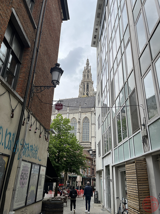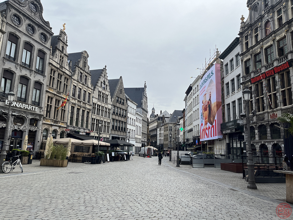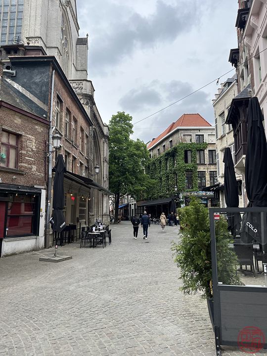 일단, 안트베르펜에 온 목적은 대성당이다. 한 20분 걸어가야 하는데, 이른 시간이라 아직 주변의 가게들이 개장 준비 중이었다. 가는 길 좌우로 식당의 야외 자리(야장?)도 많아서 날씨 좋을 때 운치 있을 것 같다.