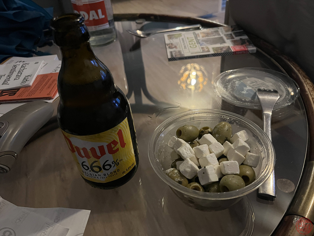 열심히 돌아다닌 벨기에에서의 첫 날을 치즈+올리브 안주에 맛있는 맥주 마시면서 마무리했다.