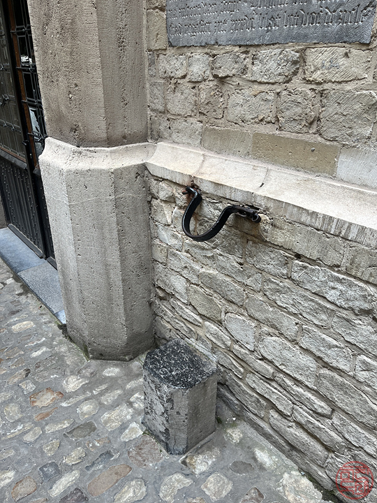 입구 근처에 있는 쇠고랑. 죄수(?)를 잡아서 목에 걸어 잡아두는 것인 것 같다.