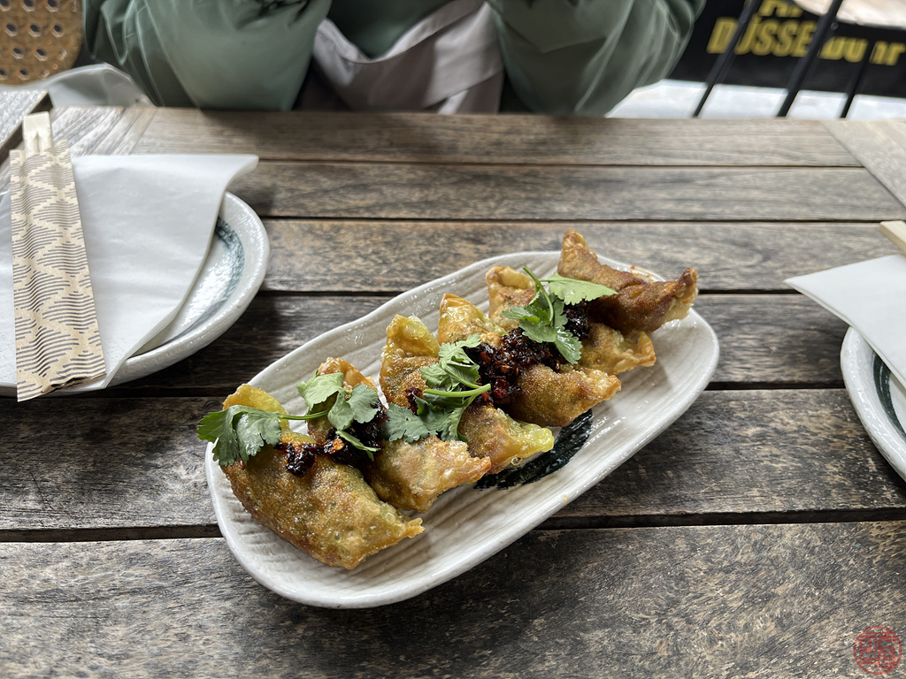 라멘을 하나씩 주문하고 군만두도 하나 주문했는데 고수를 얹어주고 마라가 살짝 들어간 양념을 위어 얹어주었다.