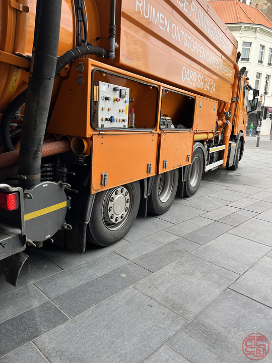 그런데, 실내에서 계속 똥냄새가 엄청 나는 거다. 이게 뭐지? 도시가 원래 이리 냄새가 나는 거야? 큰 애가 도시에 찌릉내 많이 난다더니 이게 그런 건가? 의심하면서 건물을 벗어나려는데, 헉... 진짜 똥차가 작업 중이었다.