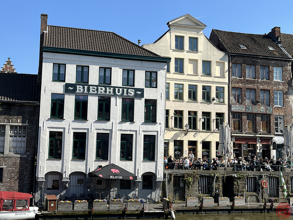 아래 건물은 이름이 그냥 '맥주집'이지? 아내랑 큰 애가 4월에 구경할 때엔 도심의 물길을 따라 관광하는 배를 탔다는데, 이 맥주 집을 얘기하기를 맥주 메뉴만 200가지가 넘는 곳이라 했단다. 우리 집 호스트는 '이 가게에 맥주가 한 6-700가지 있을 걸?'이라고 했다. 하여간 맥주가 어마어마하게 많은 곳이고, 겐트에서 진짜 유명한 맥주집이다.