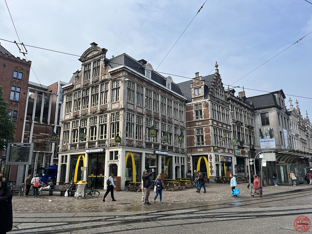 여기에 2개의 대형 교회와 하나의 종탑이 있어 '3개의 탑 (Three towers)'라고들 하나 본데, 이 거리가 겐트 관광의 시작인 듯. 이 거리에 중세에 만들어진 듯한 건물에 맥도날드가 있다. 완전 멋지다!