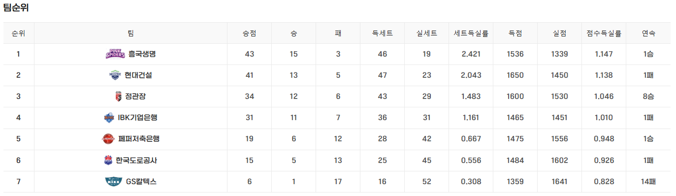 아래 표는 KOVO 홈페이지에서 캡쳐