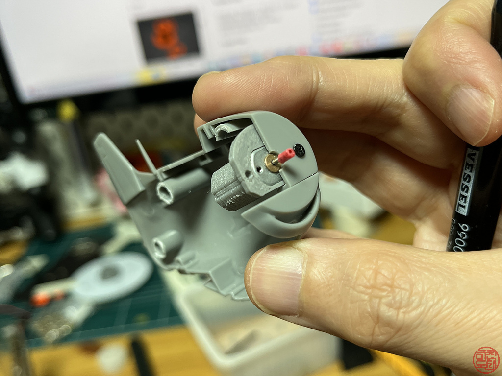이건 P47에서의 예. 저 안 쪽에 마운트하는 부품을 만들어 넣고, 유사시 모터만 뺄 수 있다.