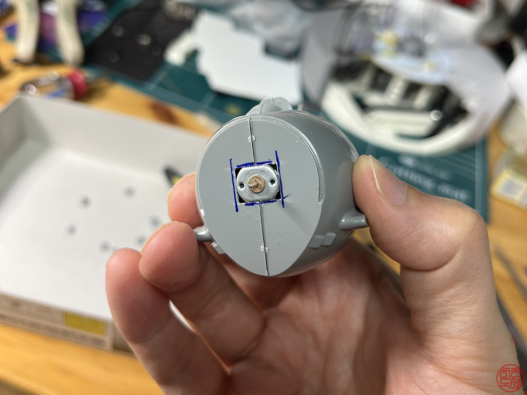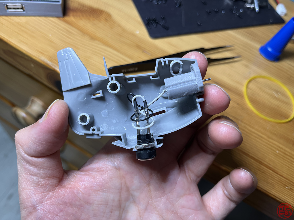 이건 P47에서의 예. 저 안 쪽에 마운트하는 부품을 만들어 넣고, 유사시 모터만 뺄 수 있다.