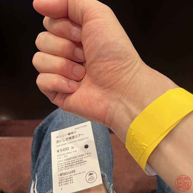 들어가면 있는 안내 데스크에서 예약 여부를 확인하고 발권 자판기에 가서 500원 결제를 하고 나면, 투어를 위해 몇 가지를 확인하고 팔찌를 채워준다. '혹시 운전하고 왔냐?' '술 마실 수 있냐?' 기타 등등.