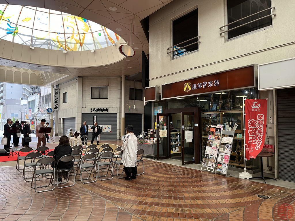 관악기 샵 앞에는 주말이라고 작은 연주회도 있을 예정인가보다. 출연진들인 듯한 이들이 연습하고 있었다.
