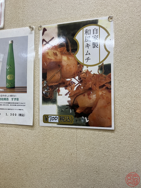 주방에서 요리를 다 해와서, 각 테이블에 있는 철판에서 식지 않게 하며 먹는 스타일이다. 벽에 직접 담근 김치도 반찬으로 주문할 수 있다고 되어 있네. ㅎㅎ 이건 무슨 맛이려나. 일본 풍이라니 달짝지근하고 시큼한 맛은 덜할 것 같다. 김치가 있으면 더 좋겠으나, 애매한 맛의 김치는 싫어서 주문 안 했다.