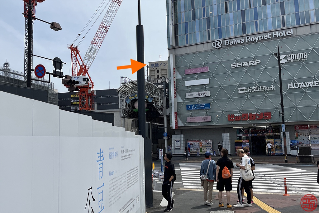 역 동쪽 출구 쪽엔 공사를 하고 있었는데, 그 사이로 난 길을 따라 길을 건너면 길 바로 건너 편에 종합 전자 기기 쇼핑몰인 빅카메라가 보이고 그 옆으로 토요코인도 살짝 보인다.