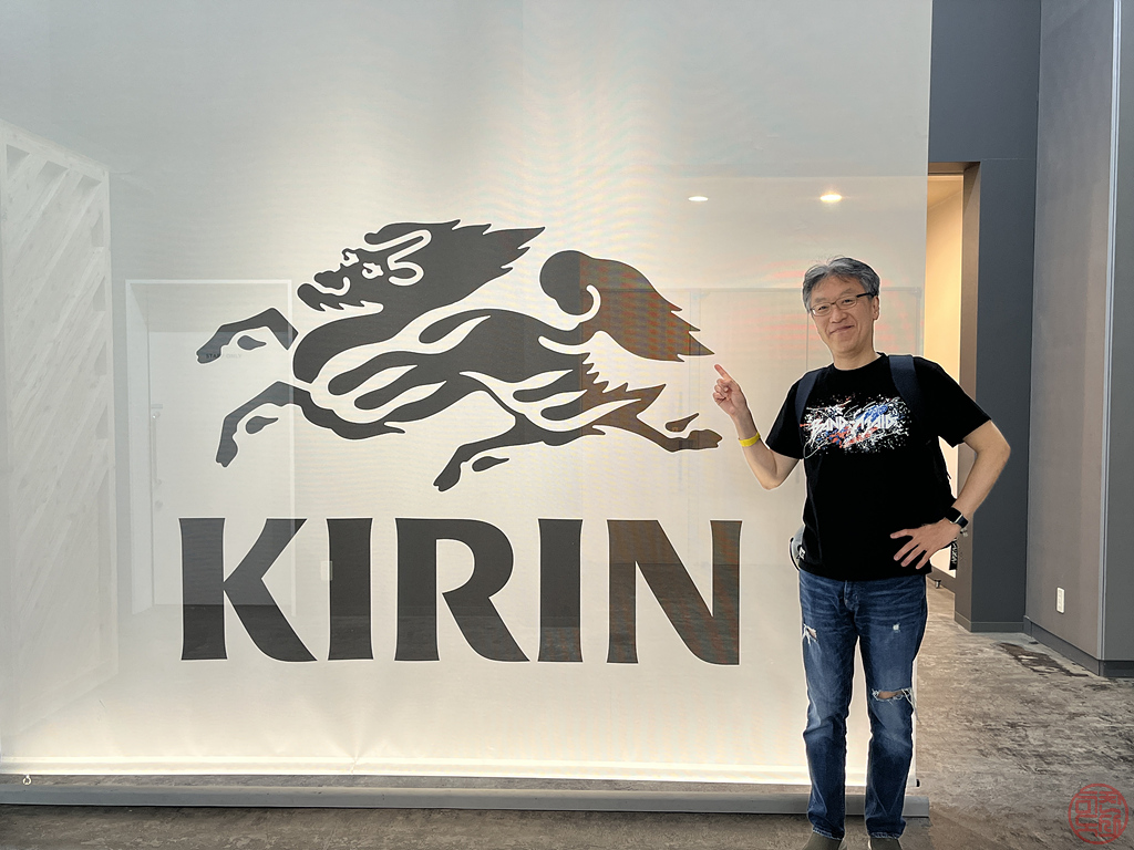 출입구 앞에 있는 큰 기린 맥주 로고 앞에서 셀카 찍고 있으니, 가이드가 다가오더니 찍어주겠다고 해서 또 한 컷. 😉