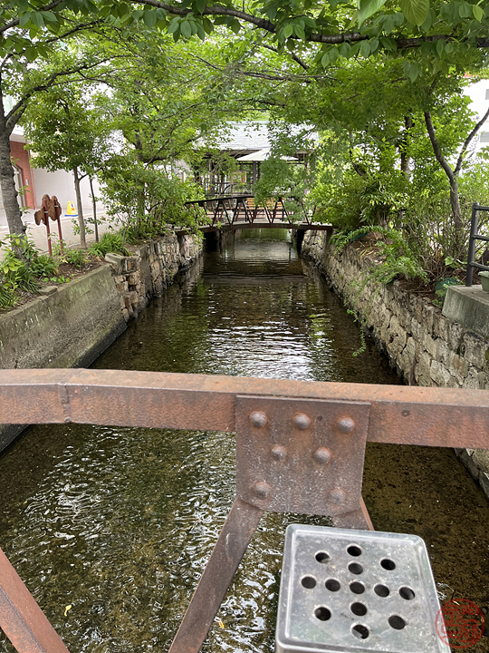 걸어가는 길에 또 작은 물길이 있는데, 건너는 다리 중간에 의자와 재털이가 딱! 있는 것이 분위기 끝장이다.