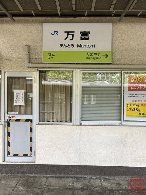 오카야마 역에서 전철로 30분 정도 거리에 있는 만토미(万富)역 근처에 있다.
