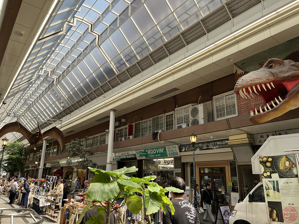 오모테초 상점가에 도착했다. 도착한 지점에 영상에서 봤던 공룡 조형물이 딱 있다. 😝