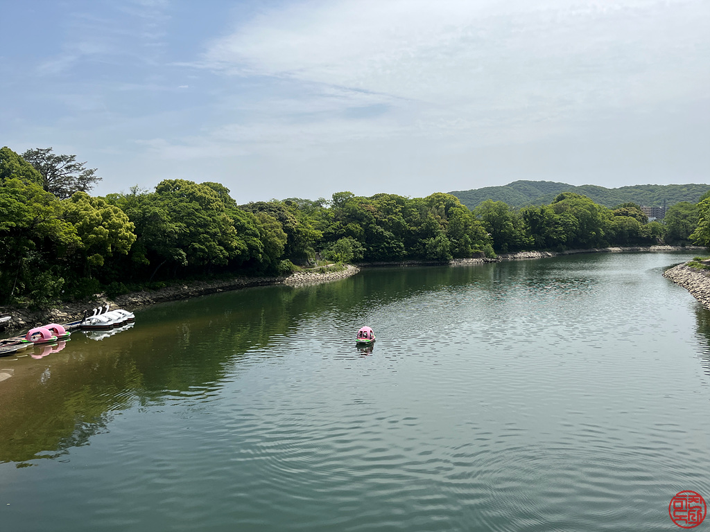 성과 공원 사이 호수에 오리 보트와 복숭아 보트를 탈 수 있는 곳이 있다.