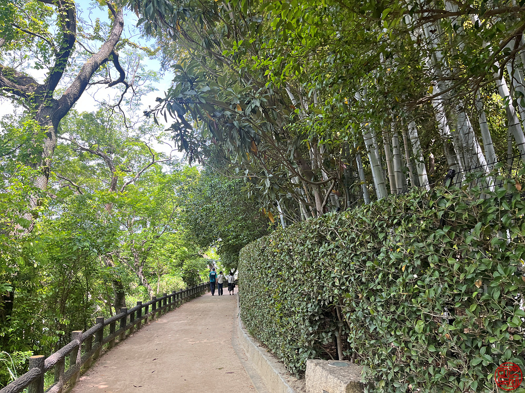 공원 입구는 나무 그늘 길로 좀 걸어가야 나온다. 오른 쪽은 꽤 큰 대나무 숲이다.