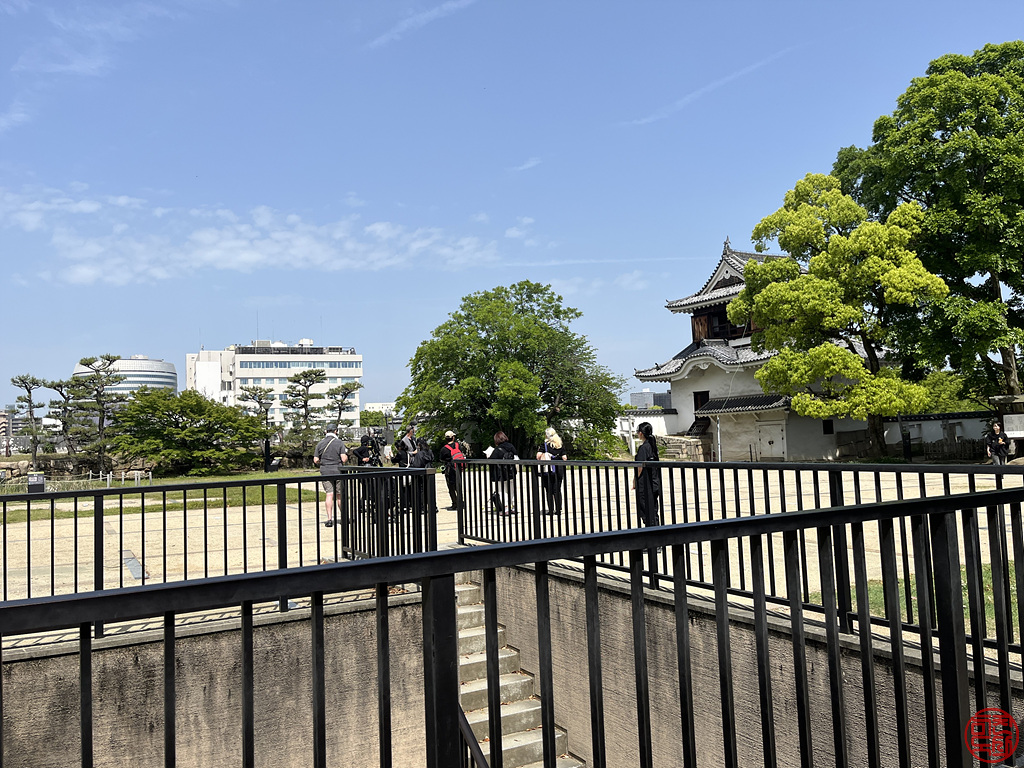 저 앞에 있는 입구를 통해 성 안 쪽으로 들어가니, 마당 한 켠에서 방송국 촬영 같은 걸 하고 있다. 스태프들은 모두 일본 사람인데, 말하는 사람은 서양 사람이다.