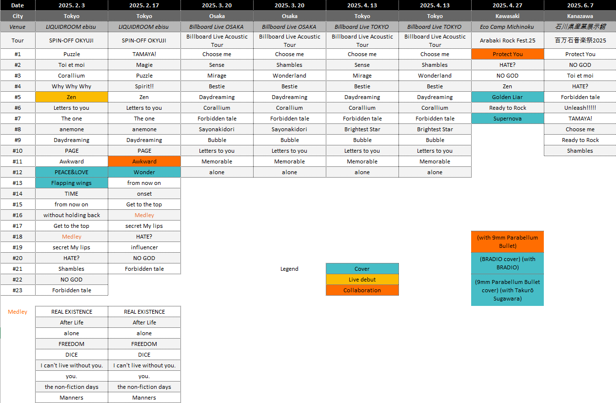 2025년 투어 1라운드가 끝나면서, 올 상반기 BAND-MAID의 셋리스트와 활동을 간단히 정리해본다.