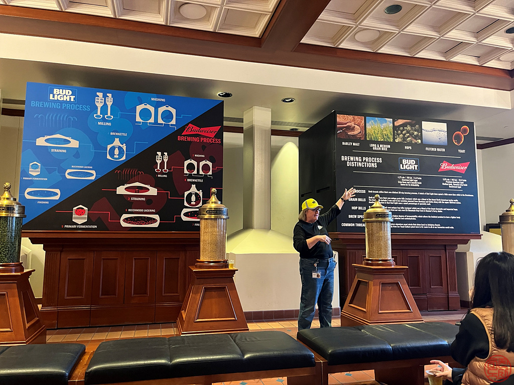 투어를 안내해주신 여성 가이드는 연륜이 느껴지는 분이었는데, 유쾌하게 버드와이저의 역사와 공장 이야기를 들려주셨고 그 자부심이 고스란히 전해졌다. 영어로 빠르게 설명하셔서 다 알아듣진 못했지만, 여러 번 맥주 공장 투어를 해본 덕분에 흐름을 따라가는 데 큰 어려움은 없었다.