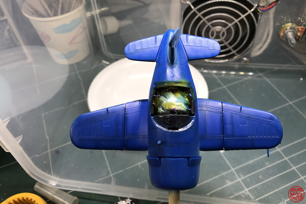 캐노피가 큼직해서, 실내 색을 미리 칠해고 그 위에 동체색을 칠하려 합니다.