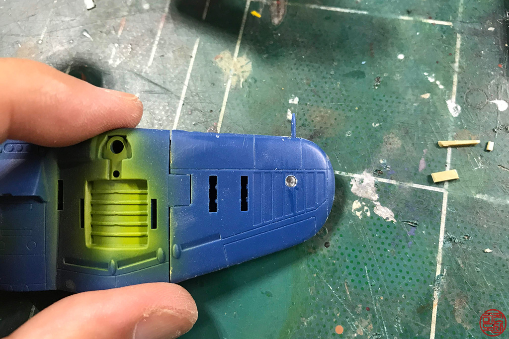 동체 조립 전에 캐노피 내부 부분을 미리 도색했는데, 접합선 수정이 필요하네요. 쩝.
