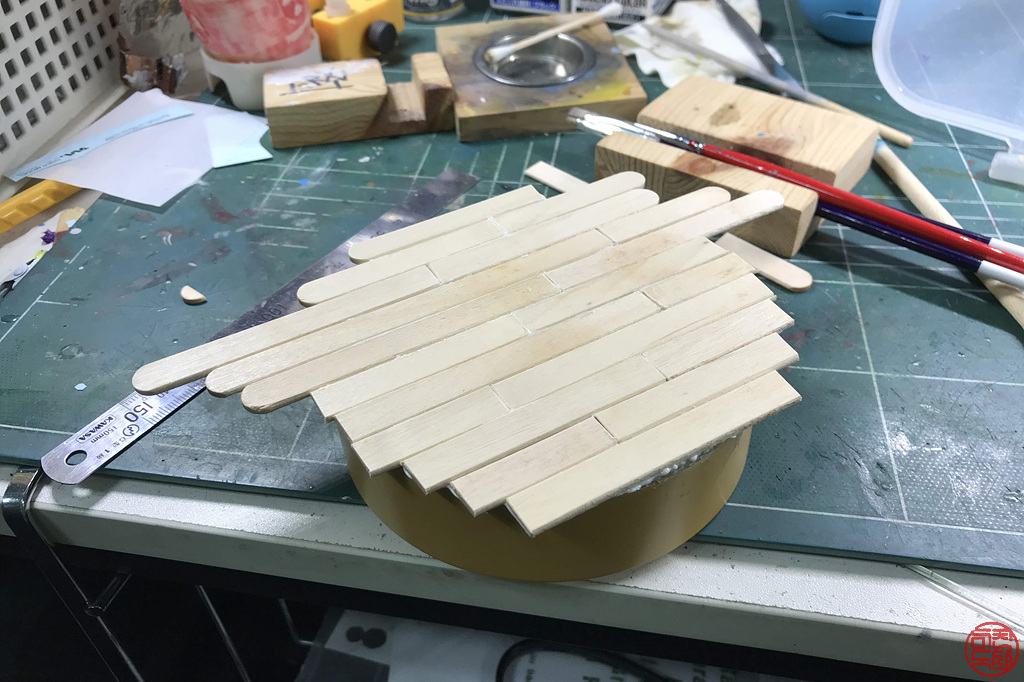 그 위에 하드 막대를 잘라서 적당히 목공풀로 붙여줍니다.