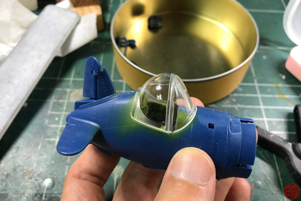 캐노피가 큼직해서, 실내 색을 미리 칠해고 그 위에 동체색을 칠하려 합니다.
