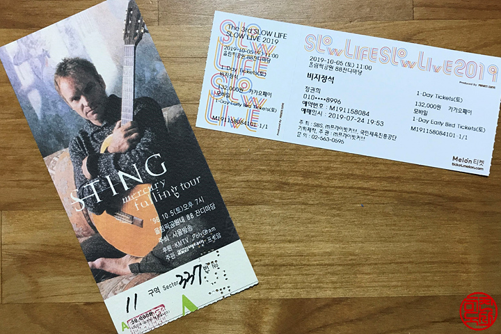 올 7월 중순 즈음에 페이스북에 폭탄과 같은 1차 라인업이 발표되었다. '스팅(Sting)'이 슬라슬라에 온다는 것이다. 이튿날 헤드라이너는 '이적'인 것 같고... 헉. 이거 뭐지. 스팅이 올해 그의 히트곡을 새롭게 녹음해서 'My Songs'란 앨범을 냈는데, 그 투어의 일환인 것 같다. 정신이 혼미하네. 스팅은 1996년 내가 사회 초년생이었던 해에 처음 내한했고, 그 때 가보고 완전 반했던 경험이 있다.
