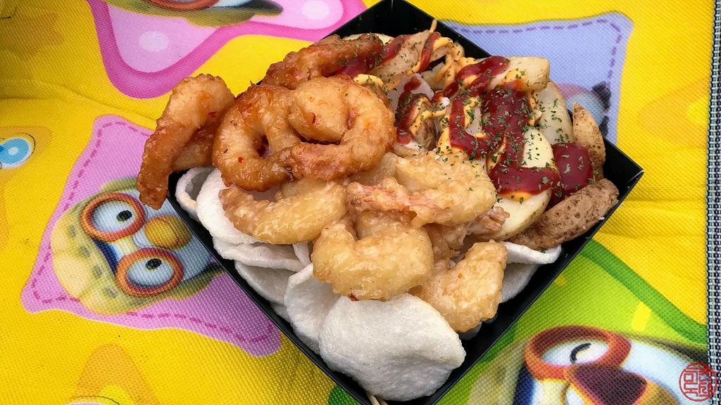 규영이가 칼리 공연 끝나고 점심을 먹겠다 해서 칼리 공연 중에 먹거리 장터를 둘러보고 크림/칠리 새우 세트를 하나 샀다.