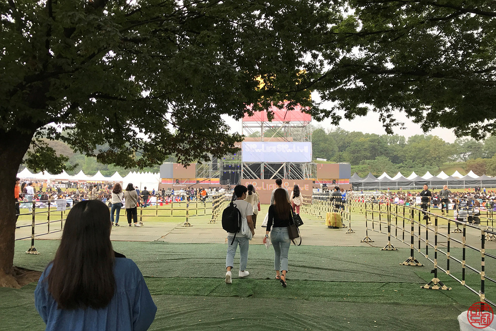공연은 12시부터 시작인데, 우리는 10시 반쯤에 집에서 출발했다. 일찍부터 줄 선 사람도 꽤 있다 하는데, 그 정도까진 필요 없을 것 같아서... 마침 공연이 있는 주말에 전국 체전이 있어 붐빌 수 있다는 안내가 있었지만, 시간이 일러서인지 그닥 주차에 어려움은 없었다. 공연장인 잔디 마당에 가까운 곳에 차를 대고 공연장으로 이동.